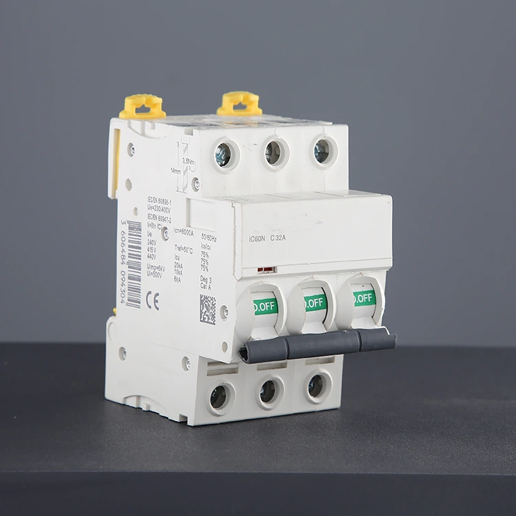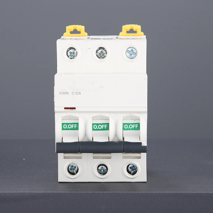 DZ47 3-napaisen 32A AC-virtakatkaisijan nimellisvirta on 32A. Varmista, että todellinen kuormitus pysyy kohtuullisella alueella; pitkäaikainen käyttö ylikuormitusolosuhteissa on ehdottomasti kielletty. Jos tätä ei noudateta, seurauksena voi olla toistuva laukaisu, sisäisten komponenttien nopeutettu vanheneminen ja vaikeissa tapauksissa täydellinen laitevika.